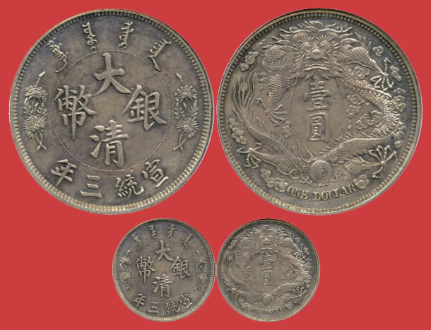 455 COINS. CHINA — PROVINCIAL ISSUES. Kiangnan Province: Silver 5-, 10-, 20-, 50-Cents and Dollar, CD1900 (KM Y141a, 142a.4, 143a.4, 144a, 145a.4; L&M 236, 235, 234, 232, 229). The 5- and 10-Cents fine, the 20-Cents good very fine, the 50-Cents good fine and rare, the Dollar good extremely fine. (5pcs)