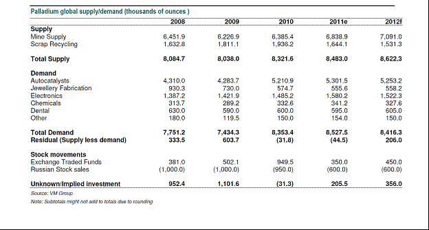 On the supply side, VM Group’s team notes that "South Africa produces about 80% of global PGM supply. As a result, political risk in South Africa is highly correlated with PGM supply risk. The political, macroeconomic and policy environments in South Africa have a particular resonance to the PGM market; more so than for any other country or any other metal — apart from perhaps China and the rare earth elements. Right now, the omens are not good."