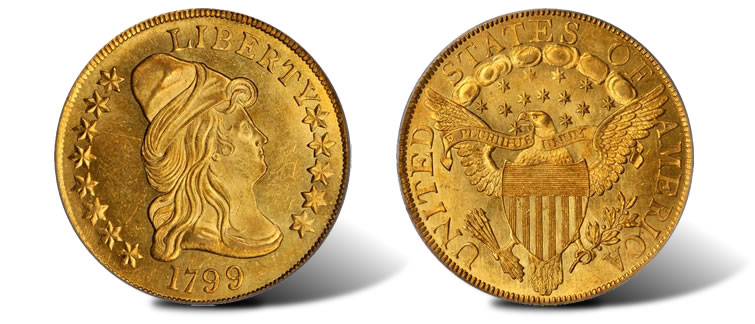 - Lot 7713, 1799 Capped Bust Right Eagle, Large Obverse Stars, MS-64 (PCGS), realized $207,000