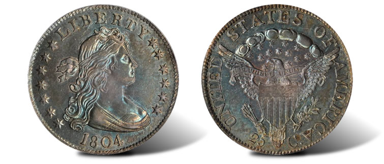 - Lot 7303, 1804 Draped Bust Quarter, MS-63 (PCGS), CAC, From the Richard C. Jewell Collection, realized $184,000