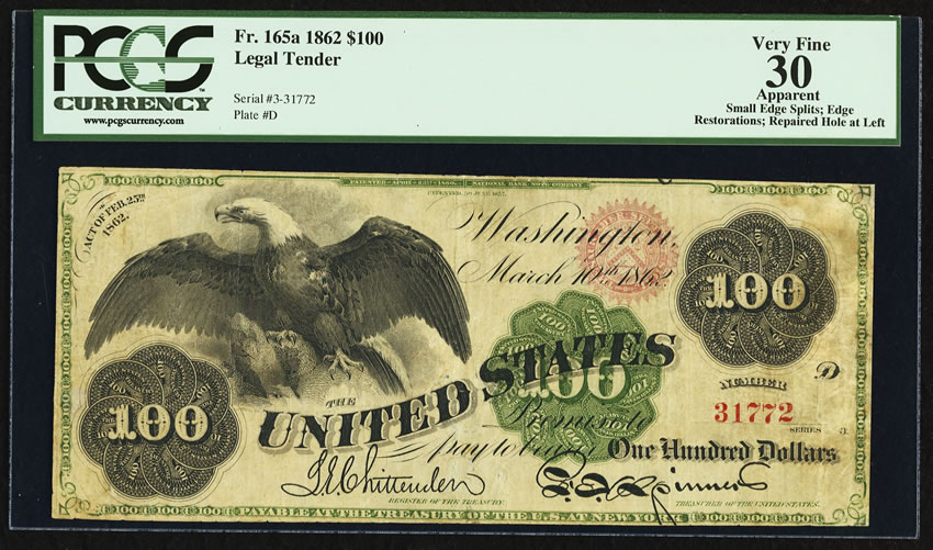 Session Four contained Large Size Type Notes, with the standout among the grouping being the Fr. 165a $100 1862 Legal Tender PCGS Apparent Very Fine 30, which sold for $69,000.
