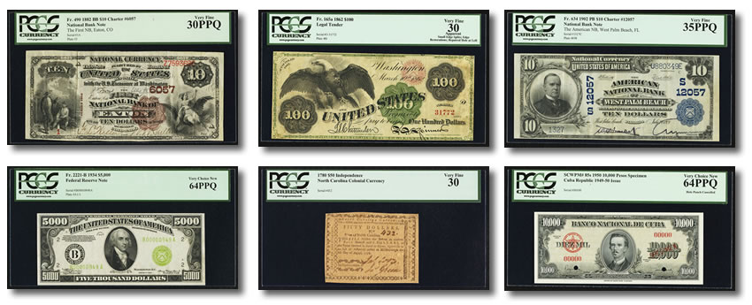 The auction began with a large selection of World Notes representing 94 countries. The Chinese and Cuban notes, in particular, brought strong prices.