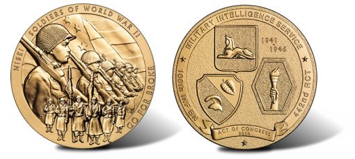 The Nisei Soldiers of World War II Congressional Gold Medal was authorized by Congress with the passage of Public Law 111-254. That same law authorized the Secretary of the Treasury to strike and sell three-inch and one-and-one-half-inch bronze reproductions of the medal. These reproductions are currently available directly from the US Mint for $44.95 and $7.95, respectively.