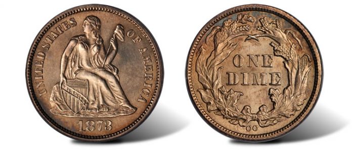 The spotlight coin of the collection is without a doubt the Unique 1873-CC Liberty Seated No Arrows Dime, graded MS-65 by PCGS and bearing the Eliasberg pedigree. It is the only specimen known to exist, which makes it highly coveted among collectors of Carson City Mint coinage and especially those seeking to complete their own set. This much sought-after dime was purchased in 2004 for $891,250 from a Bowers and Merena auction by Rusty Goe, chief architect of the Battle Born Collection for the last 11 years, who later sold it into the Battle Born Collection, thus completing the set.