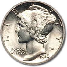 A new addition to the American Eagle Bullion Program will be a one-ounce coin made of U.S. mined palladium. (American Palladium Eagles.) Authorized by American Eagle Palladium Bullion Coin Act of 2010 (Public Law No.: 110-303), the law requires the obverse use the "Winged Liberty" design on the obverse of the Mercury Dime, and the reverse will feature a high-relief version of the reverse design of the 1907 American Institute of Architects medal. Adolph A. Weinman designed both coins. The U.S. Mint has not released images of this coin at the time this was written. (Its release is expected at some point in 2012, but it could appear down the road.)