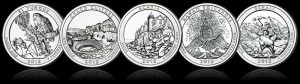 The America the Beautiful Quarters® Program enters its third year to honor El Yunque National Forest in Puerto Rico, Chaco Culture National Historical Park in New Mexico, Maine’s Acadia National Park, Hawai’i Volcanoes National Park on the big island of Hawaii, and Denali National Park and Preserve in Alaska. Along with the 2012 quarters, the U.S. Mint will also strike the five-ounce silver bullion coins for collectors. These coins will use the same design as their smaller counterparts including the denominations of "Quarter Dollar."