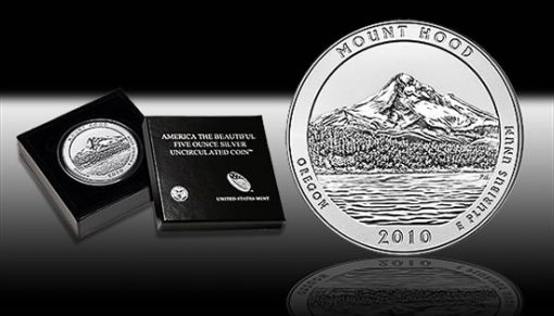 The collectible Mount Hood National Forest Five Ounce Silver Uncirculated Coin for Oregon sold out Wednesday, January 11. The fifth .999 fine silver coin issued in the U.S. Mint’s America the Beautiful Five Ounce Silver Uncirculated Coin series is now the fifth one to sell out.