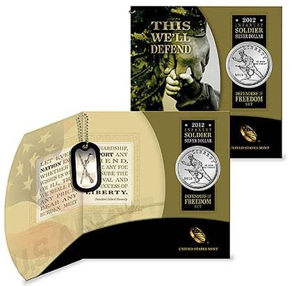 Collectors will have an option on Thursday, February 16, 2012 to purchase a limited-edition Infantry Soldier Silver Dollar Defenders of Freedom Set at a price of $51.95. The set will launch at the same time (noon ET) as the commemorative proof and uncirculated Infantry Soldier Silver Dollars.