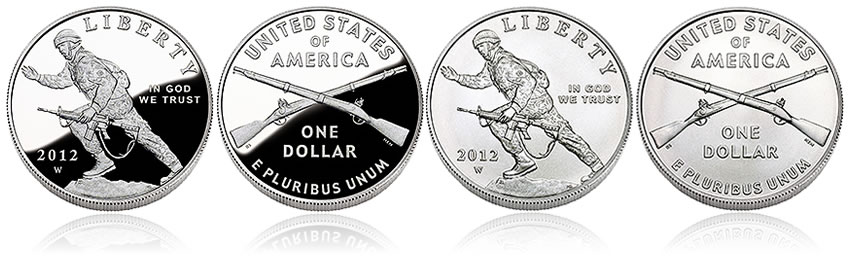 The United States Mint on Thursday, February 16, 2012, released the 2012 Infantry Soldier Silver Dollars and the Defenders of Freedom Set.