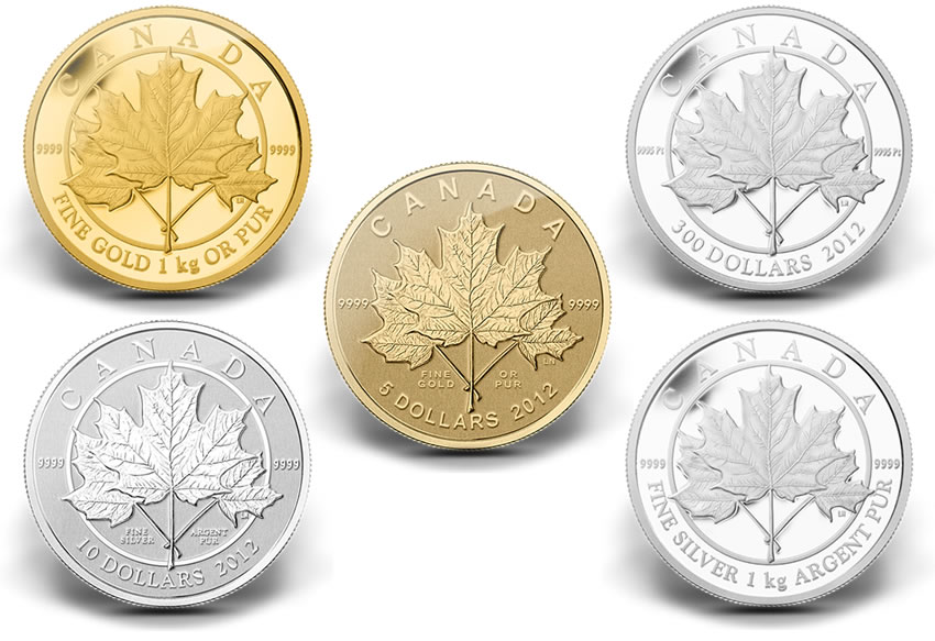 With a wide variety of sizes and compositions, the new 2012 Forever Maple Leaf Coins are priced to fall within a range of budgets. The largest sizes have extremely small mintages, and will likely sellout first. Last year’s kilo sized coin sold out on launch day.