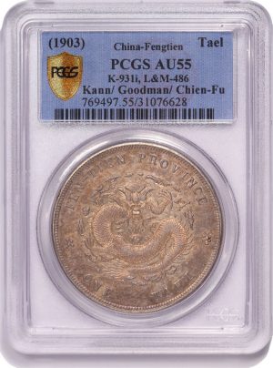 The 1903 "dragon dollar," graded PCGS Secure Plus™ AU55, was submitted by PCGS Authorized Dealer Chun-Yo-(Stanley) Chou of Fuchin coin company of Taiwan on behalf of an anonymous collector. It is insured for $5 million.