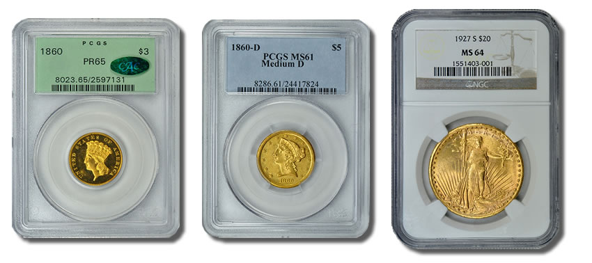 Apart from the two 1860 gold coins, there are a number of other highlights including three rare Trade dollars from the 19th century, a 1907 High Relief graded PCGS MS-63, a key date 1927-S Double Eagle graded NGC MS-64 and more. In total, over 5,000 certified coins are currently listed on the GreatCollections website.