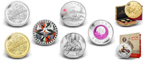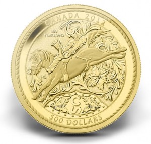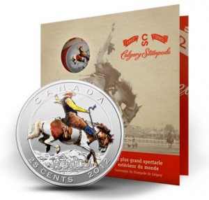 - the 100th anniversary of the Calgary Stampede, immortalized in five-ounce pure gold and silver coins, as well as colorful 25-cent cupronickel coin and stamp set;