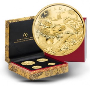The majesty of the highly anticipated Year of the Dragon has been exquisitely expressed on a variety of Royal Canadian Mint precious metal coins and in response to continuing demand for exclusive keepsakes of this momentous year, the Mint is introducing a very exclusive set of 99.99% pure gold coins in fractional sizes.