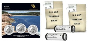 New Acadia quarters in rolls, bags and the three-coin set were among favored collector choices last week, U.S. Mint coin sales show. Each of the new products appeared in the top ten list of weekly sales.