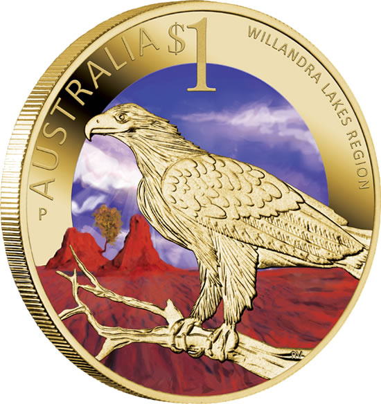 Offered as the fifth coin of the 2012 Celebrate Australia series is the Willandra Lakes Region $1 Coin showcasing a reverse emblematic of the region located in New South Wales, Australia.