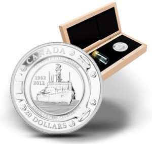 In the anniversary category, two new collector coins pay tribute to the 50th anniversary of the founding of the Canadian Coast Guard in 1962. The famed heavy icebreaker CCGS Louis S. St-Laurent appears on $20 silver coin that was designed by maritime artist Yves Bérubé. According to the Mint, it was inspired by the Bérubé’s own sighting of the Coast Guard vessel when came to rescue him from an ice-bound ship.
