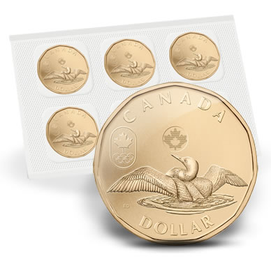 The latest strike represents the fifth in a collection that began in 2004. Inspired by the tale of the first "lucky" loonie that was embedded in the ice of the 2002 Winter Olympic Games in Salt Lake City, an official version for circulation launched in 2004, 2006, 2008, and 2010 — each, except for year 2010, with different designs of the iconic bird plus the country’s official Olympic emblem.