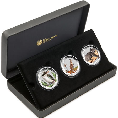 The collection is a first for the Perth Mint. Never before have these three members of Australia’s fauna been featured together in a colored, 99.9% fine silver collection.