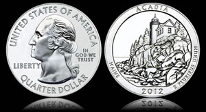 Collectible 2012-P Acadia National Park Five Ounce Silver Uncirculated Coins were just released Monday, August 13, 2012. United States Mint sales figures have their one-week total at 6,552. In contrast, debut unit sales for the immediate previous 2012-P Chaco Culture uncirculated coin were 6,365 and the 2012-P El Yunque uncirculated coin were 6,514.