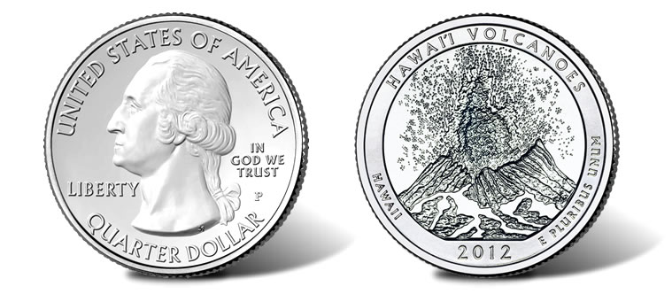Hawai’i Volcanoes quarters are the fourth 2012-dated release in the America the Beautiful Quarters® Program. The series debuted in 2010 and features five new quarters every year, each offering a unique reverse design emblematic of a different location of national interest from around the United States, the District of Columbia and the five U.S. territories.