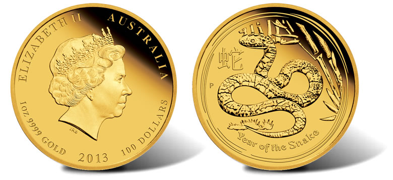 Released today, 2013 Year of the Snake Gold and Silver Proof Coins are offered by the Perth Mint in 99.99% pure gold or 99.9% pure silver.