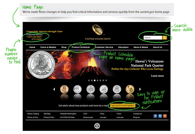 In a series of images, the U.S. Mint describes some of its website changes at: