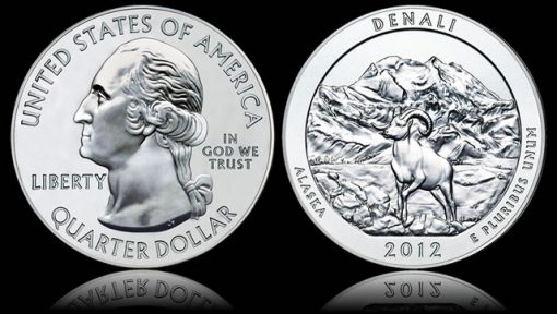Denali bullion coins depict the park located in Alaska, and mark the final issue this year in the America the Beautiful Five Ounce Silver Bullion Coins™ series. They follow previous 2012-dated coins honoring El Yunque National Forest in Puerto Rico, Chaco Culture National Historical Park in New Mexico, Acadia National Park in Maine, and Hawai’i Volcanoes National Park on the Big Island of Hawaii.