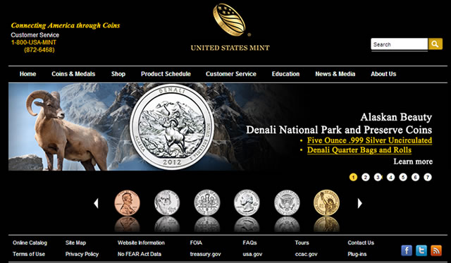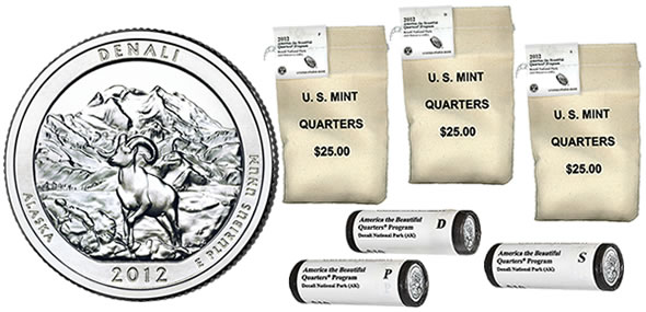 At noon ET on Monday, November 5, 2012, the United States Mint released bags and rolls of 2012 Denali National Park and Preserve Quarters.