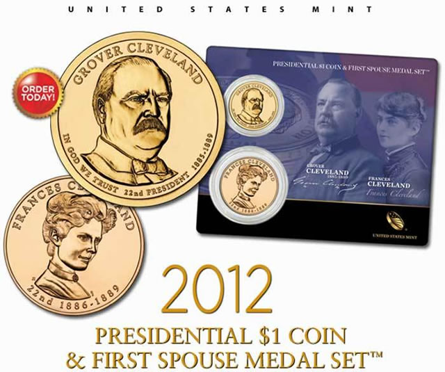 Sales started today, November 20, 2012, for the first term Grover Cleveland Presidential $1 Coin & First Spouse Medal Set. The United States Mint lists the newly released set at $9.95.