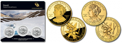 December will start a bit quicker for the United States Mint as it introduces three collector products. Denali National Park and Preserve Quarters make an appearance in a Three-Coin Set, followed by two First Spouse Gold Coins commemorating Caroline Harrison.