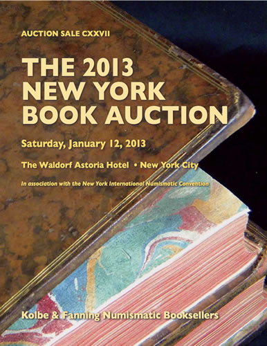 Kolbe & Fanning Numismatic Booksellers have completed the catalogue of their 2013 New York Book Auction, to be held at the Waldorf-Astoria Hotel in New York City on Saturday, January 12, in conjunction with the New York International Numismatic Convention.