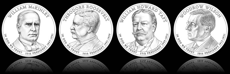 The U.S. Mint on Monday revealed line art designs of the 2013 Presidential $1 Coins. These are the twenty-fifth through twenty-eighth issues under the Presidential $1 Coin Program which debuted in 2007 to honor former Presidents of the United States.