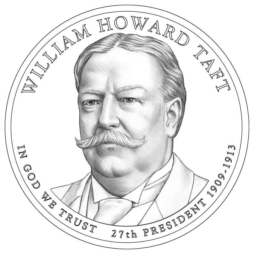 William Howard’s portrait was designed by United States Mint Artistic Infusion Program (AIP) Master Designer Barbara Fox and executed by United States Mint Sculptor-Engraver Michael Gaudioso. Surrounding the design are the inscriptions WILLIAM HOWARD TAFT, IN GOD WE TRUST, 27th PRESIDENT and 1909 – 1913.