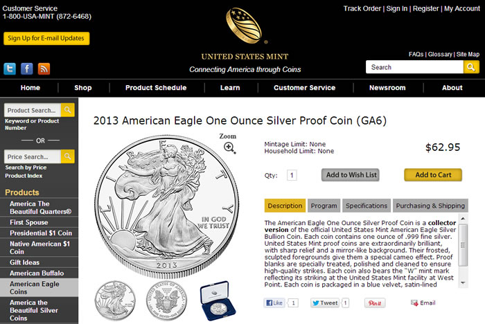 For example, the product page for the popular 2013-Proof American Silver Eagle coin now looks like this: