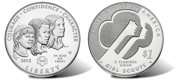Specifications and Designs for 2013 Girl Scouts of the USA Centennial Silver Dollars