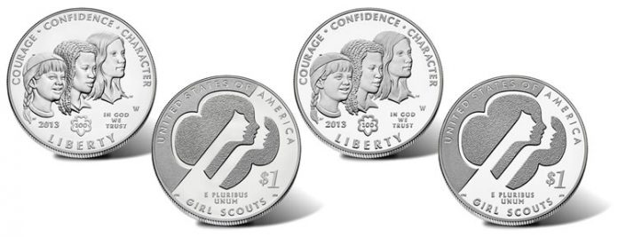 Designs of the proof and uncirculated silver dollars are emblematic of the centennial of the Girl Scout’s association.