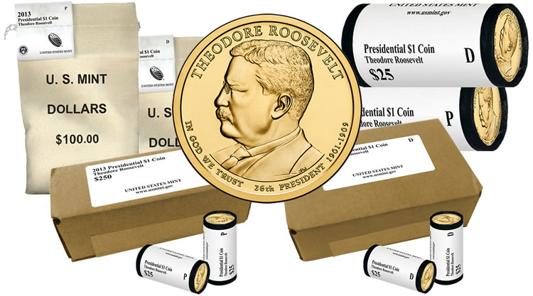 Collectors may buy rolls, bags and boxes of 2013 Theodore Roosevelt $1 Coins directly from the United States Mint’s secure web site at www.usmint.gov. Specifically, the products are found on this page.