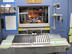 Jumping out of the Coining Press Room for a second, this is a laser machine that does the engraving for the three-segmented die collars discussed earlier. It engraves the stars, letters and numbers for edge letter collars used on dollar coins.