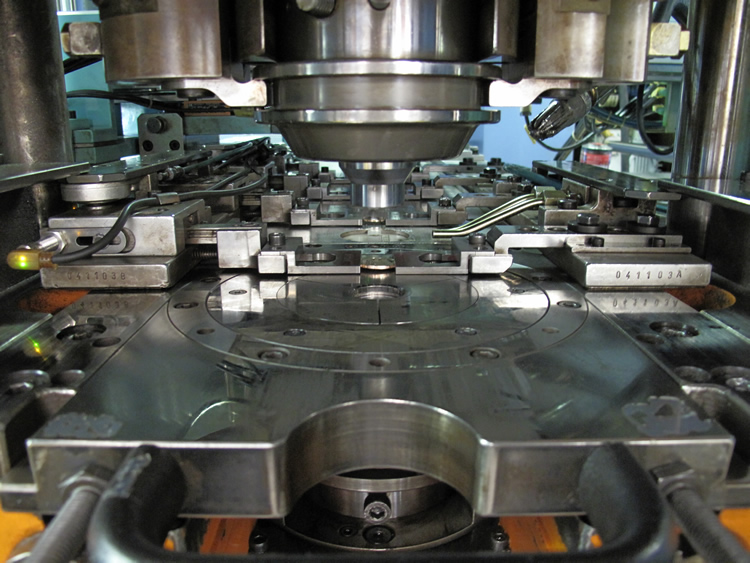 The mechanics are kind of similar with presses at the U.S. Mint at San Francisco, but the scope of Mint presses are obviously quite different and blazingly fast.