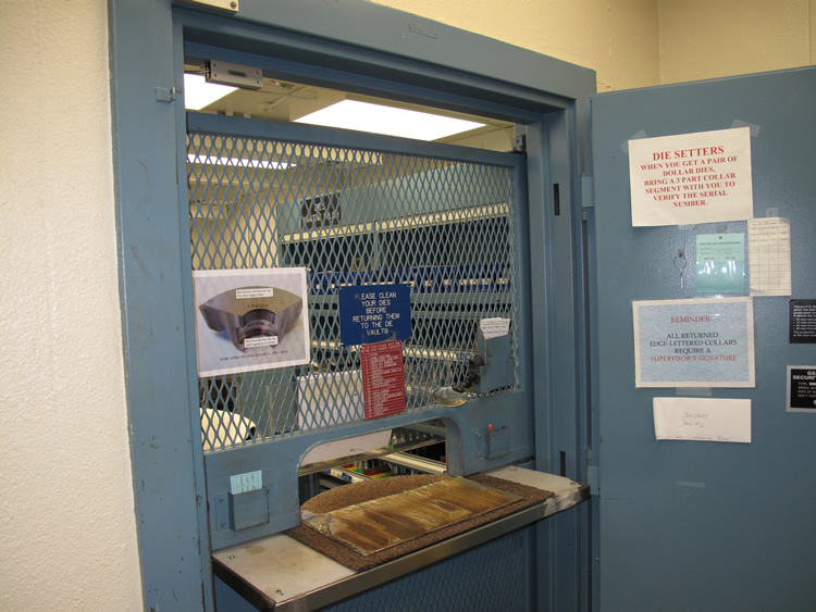 Every coin die, whether new or old, comes from and goes back into the die vault for storage and security.