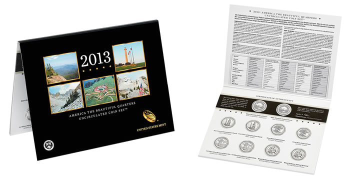 2013 America the Beautiful Quarters Uncirculated Sets are available through the United States Mint’s website, on this product page, or by calling 1-800-USA-MINT (872-6468).