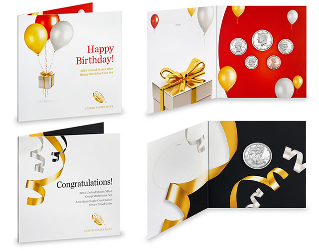 Newly introduced is the 2013 Happy Birthday Coin Set for $19.95 and the 2013 Congratulations Set for $64.95.