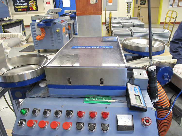 This page also offers me a final opportunity to say thank you for staying with the series — there were tens of thousands of readers per article. Another big thanks to those at the Mint as well. These folks are really dedicated to their work. Larry Eckerman, plant manager since 1999, has assembled an astounding crew and steered the SF Mint through a sea of change, literally. David Jacobs, production manager, and Paul Lewis, industrial manager, described how it used to take over 1,400 hours for an arriving blank to pass through all of the production stages to become a coin and ship out. That time has dropped to less than 100 hours. That’s impressive, and speaks volumes about technical advancements and employee commitment.