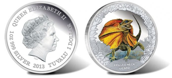 The Perth Mint introduced the new annual Australia’s Remarkable Reptiles series with the release of the 2013 Frilled Neck Lizard Silver Proof Coin. This coin is struck from one ounce of 99.9% pure silver and features a limited mintage of 5,000.