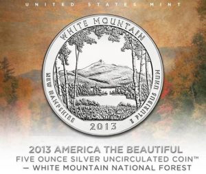 The United States Mint is now offering the collector 2013-P White Mountain National Forest Five Ounce Silver Uncirculated Coin.