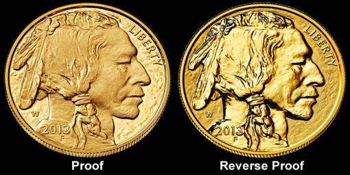 On Thursday, May 23, 2013, the U.S. Mint will release its standard, annually issued 2013-W Proof American Buffalo Gold Coin. At a future yet-to-be announced date, the U.S. Mint will also release a special 2013-W Reverse Proof American Buffalo Gold Coin to celebrate the 100th anniversary of the design appearing on both coins. Never before has the Mint released this type of Buffalo coin.