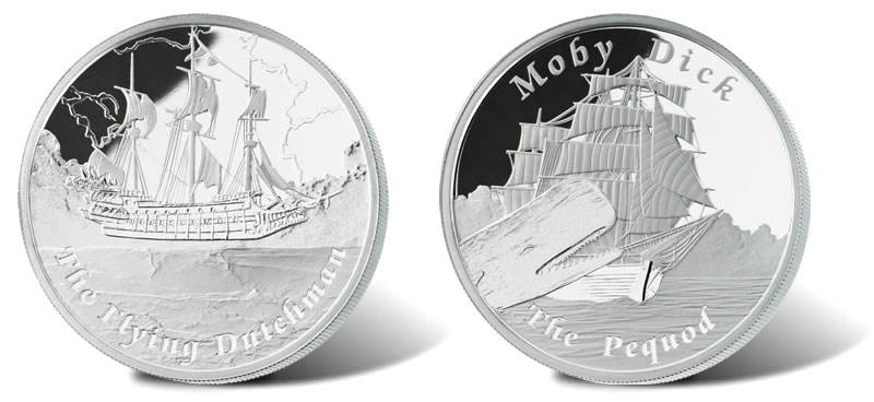 Fictional ships from literature and the arts are the subject of a new series of silver coins from the Perth Mint of Australia. The Famous Ships That Never Sailed series features its first two releases with the 2013 Flying Dutchman 1oz Silver Proof Coin and the 2013 Pequod 1oz Silver Proof Coin.