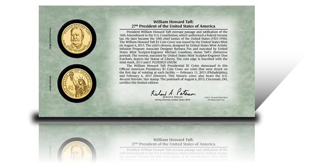 Taft was the 27th president of the United States, making this the 27th release from the American Presidency $1 Coin Cover Series.