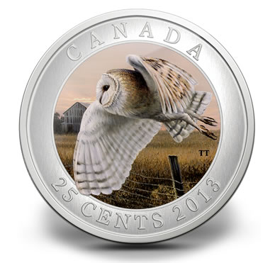 New from the Royal Canadian Mint is the 2013 25c Barn Owl Coin, the 12th release in the Birds of Canadian series.
